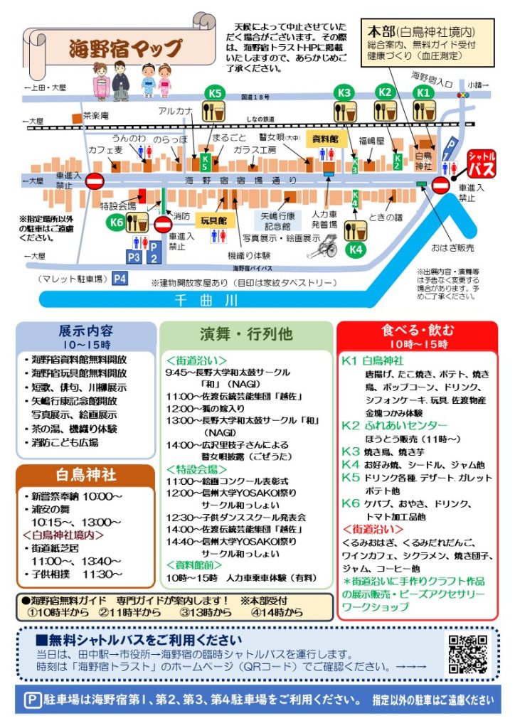 ・海野宿ガイドによる無料ガイドあり 10:30〜、11:30〜、13:00〜、14:00〜 ※受付は本部